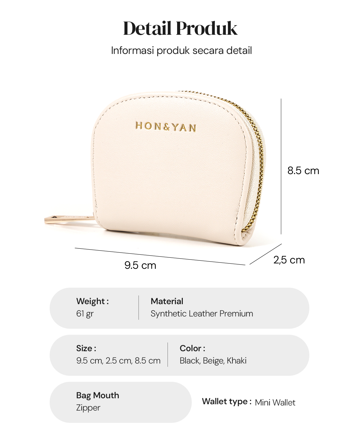 Tersedia dalam Berbagai Warna : Black, Khaki, Beige