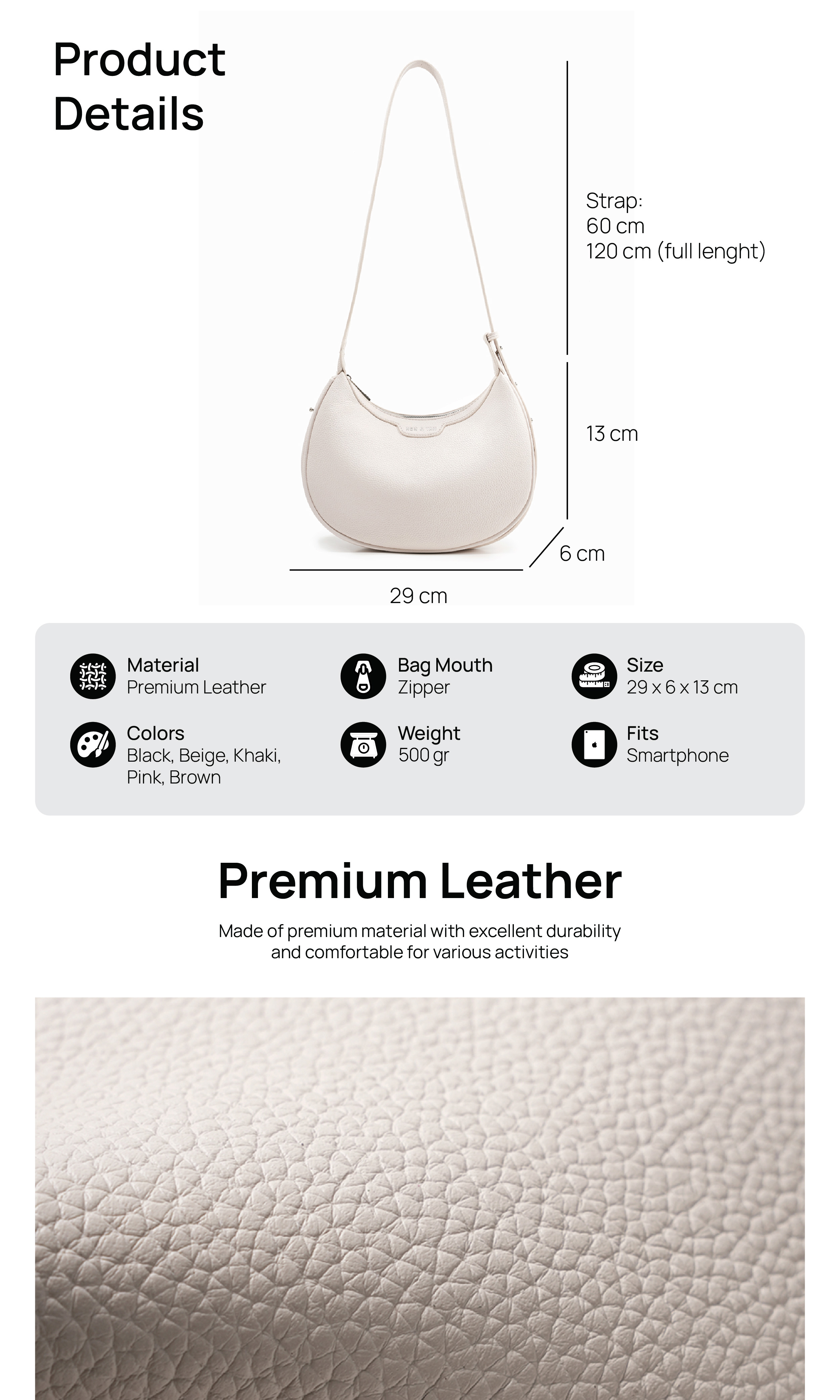 Material : Synthetic Leather berkualitas tinggi untuk tampilan yang stylish dan daya tahan yang baik.