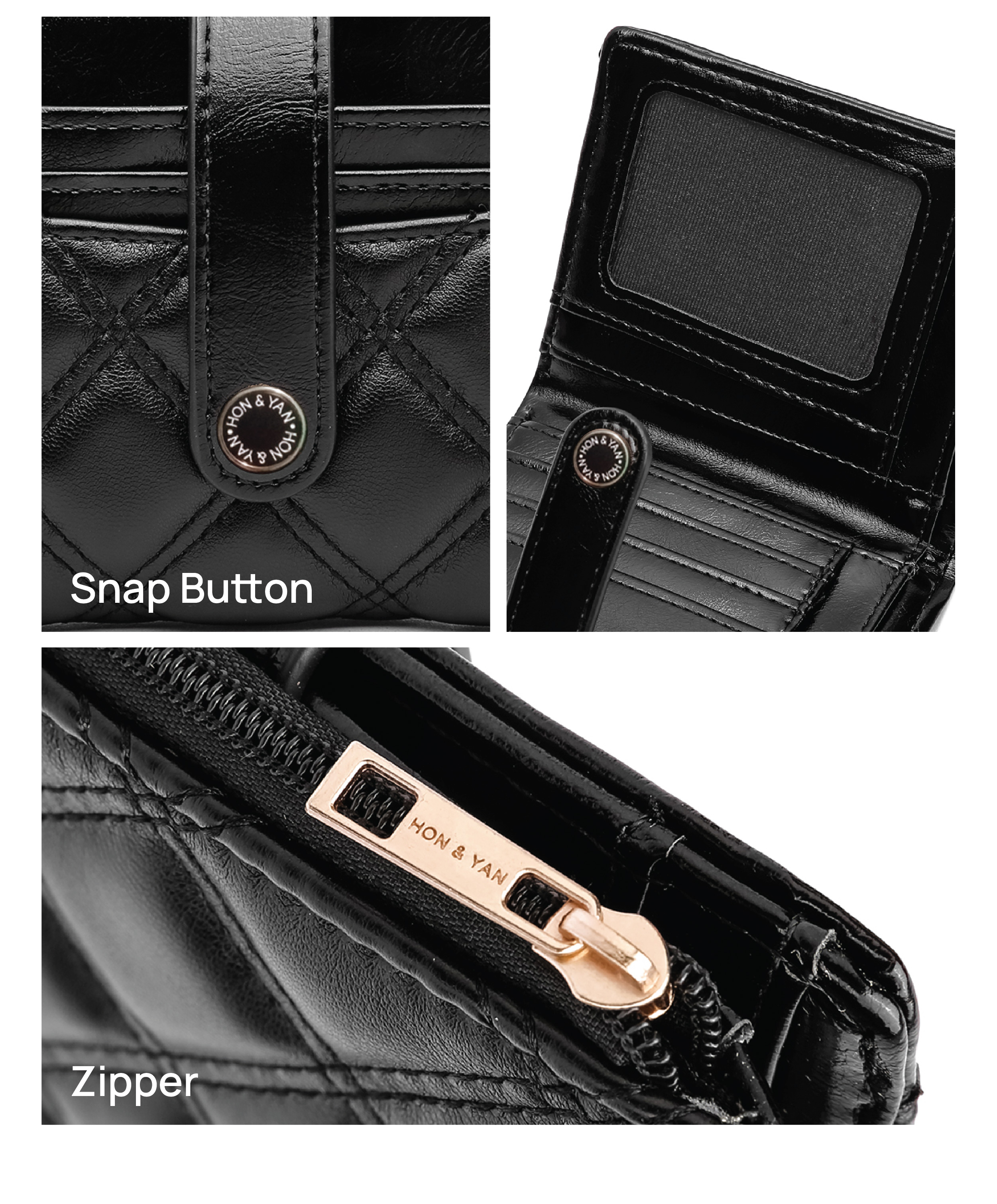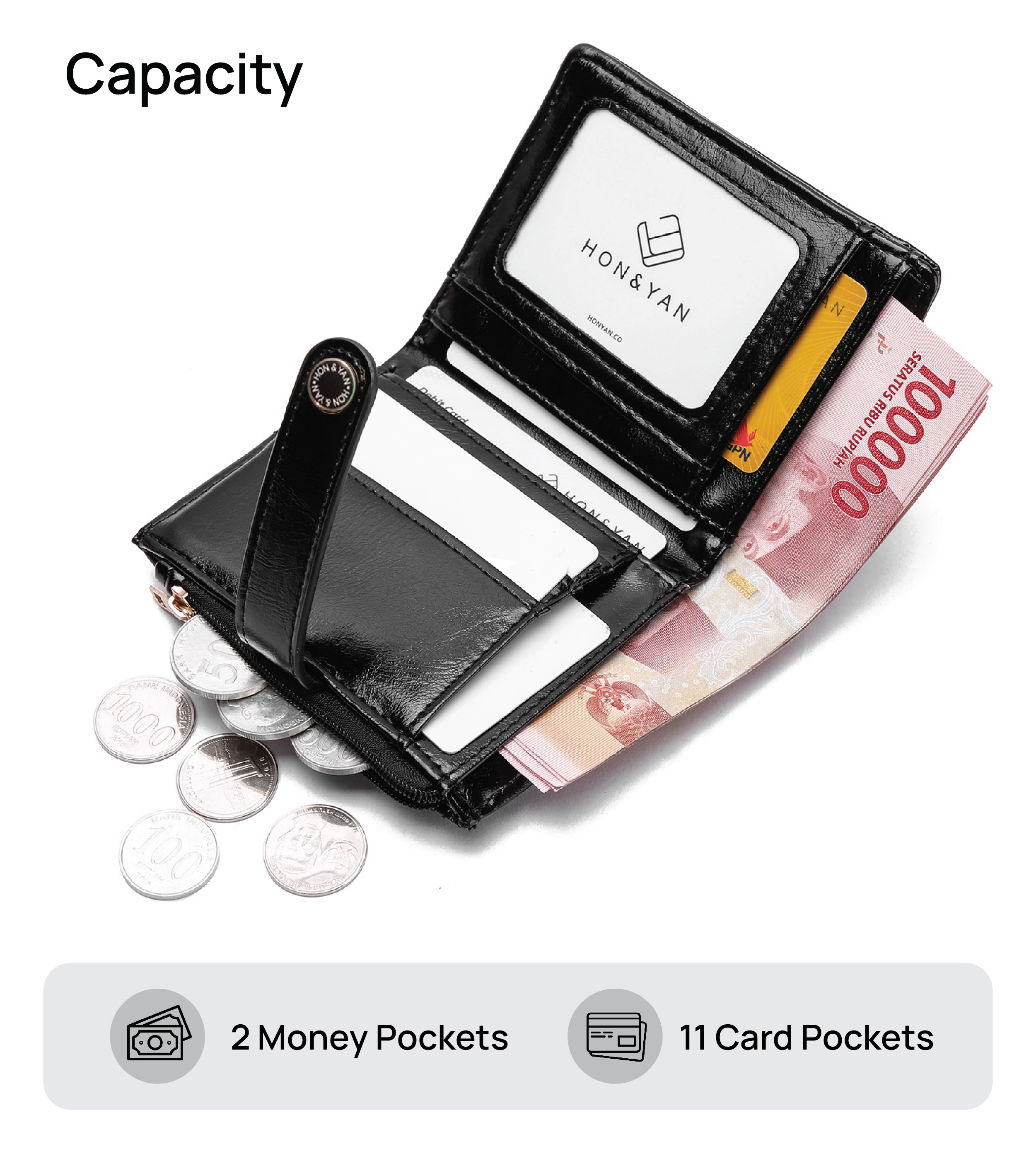 Kantong Tersembunyi : Dilengkapi dengan zipper di bagian luar dompet untuk menyimpan uang koin.