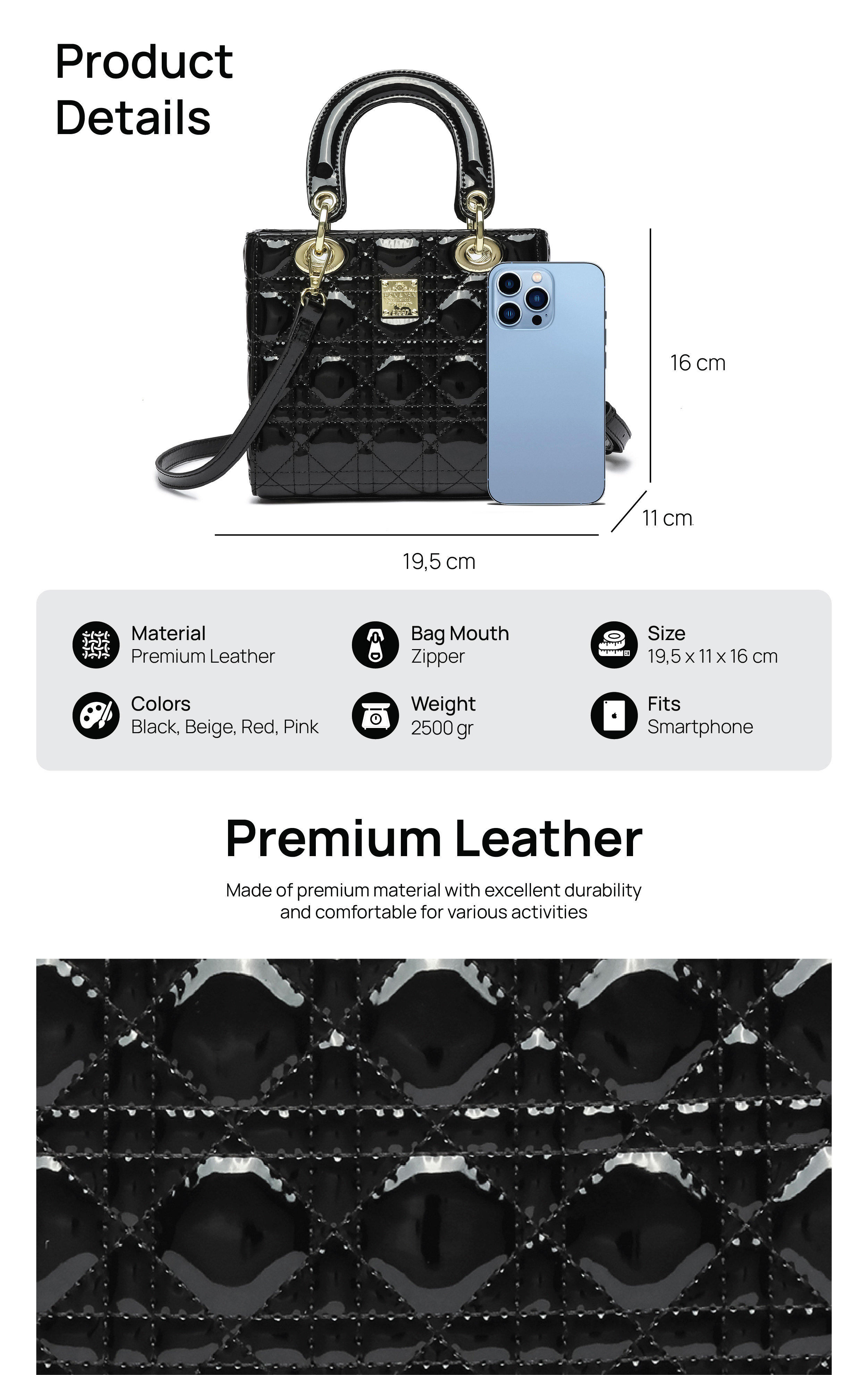 Design Modern : Terbuat dari bahan kulit sintetis berkualitas tinggi, tas ini menampilkan design yang elegant dan simple.