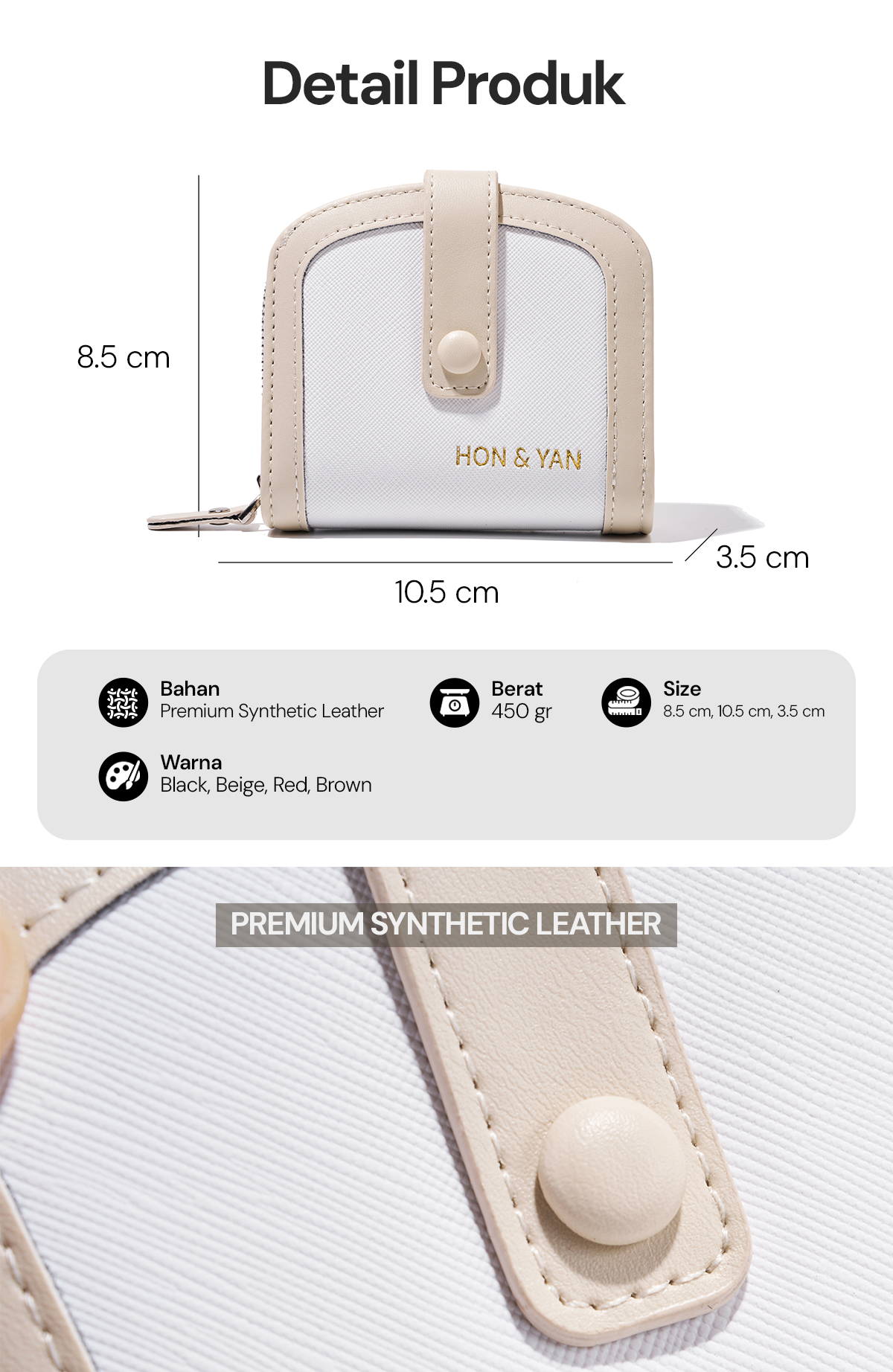Material : Synthetic Leather berkualitas tinggi untuk tampilan yang stylish dan daya tahan yang baik.